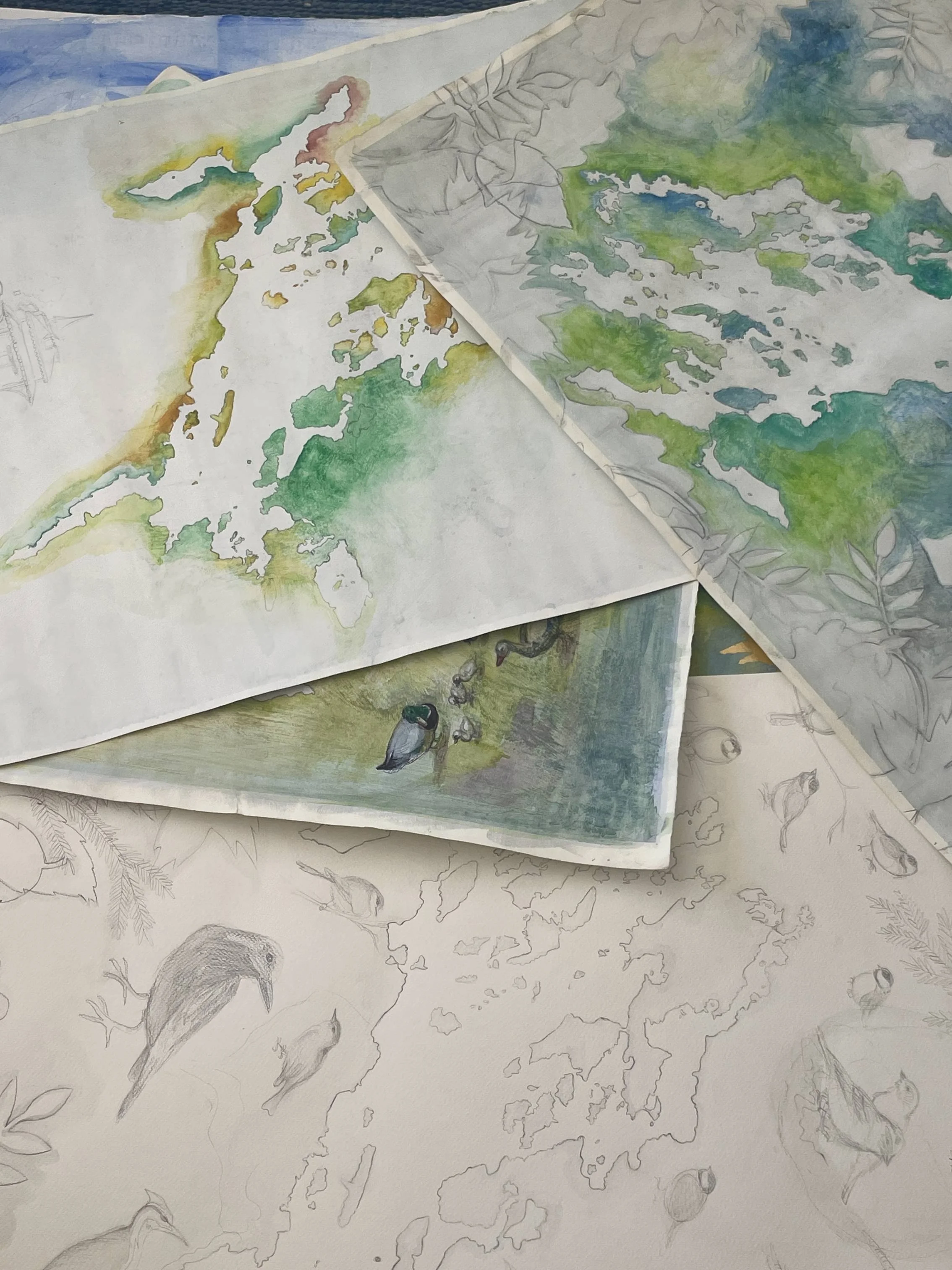 Maps take me full circle back to the idea that stories are what create our realities. The ones I am presenting here are both commissions and representative of my connection with a particular place. They are factual and tell personal people-sized stories. If you have a narrative you would like to commission me to tell please reach out, I would love to collaborate with you.