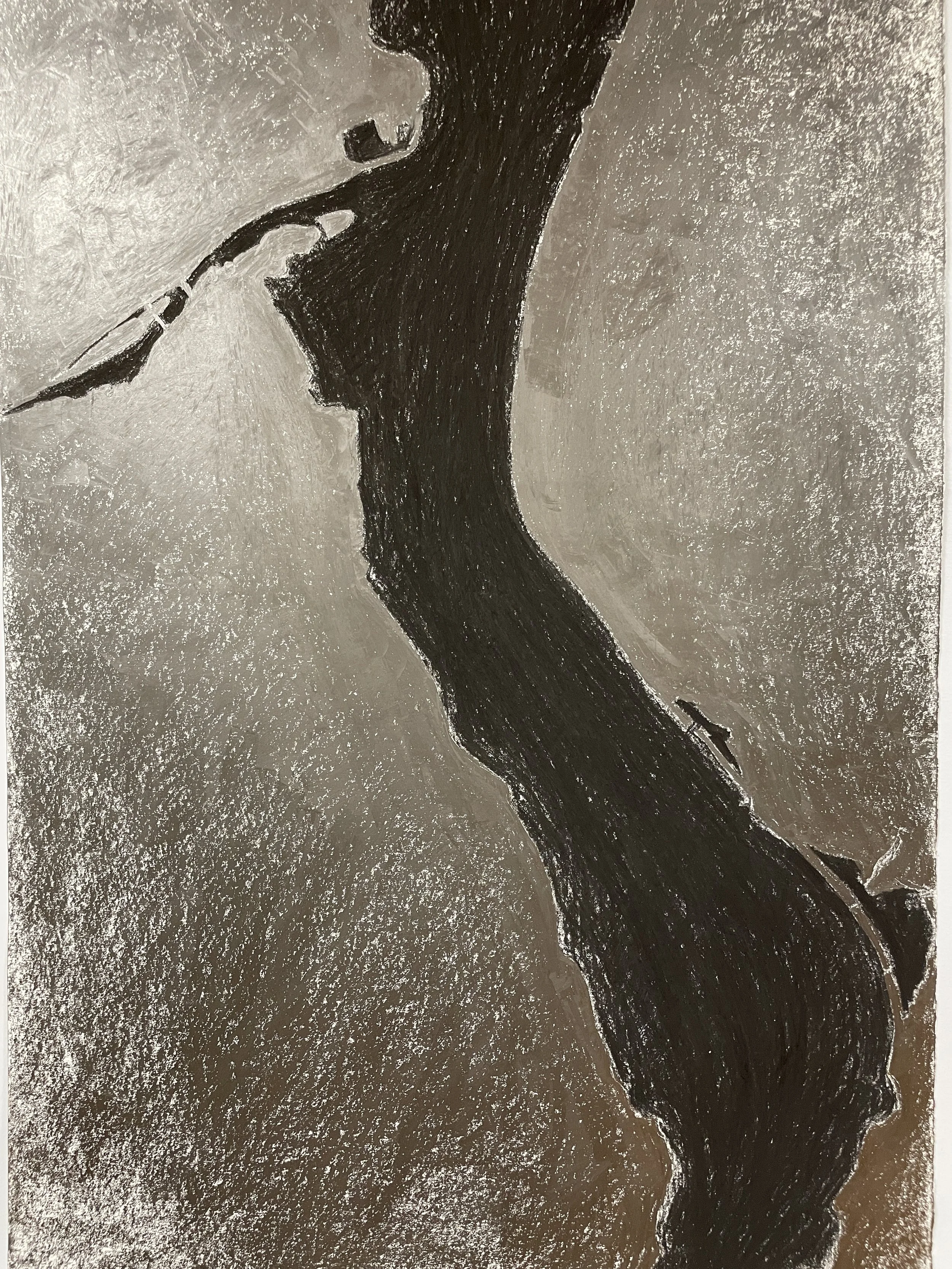 lake winnipesaukee, water soluble graphite on paper, 30 x 22 inches